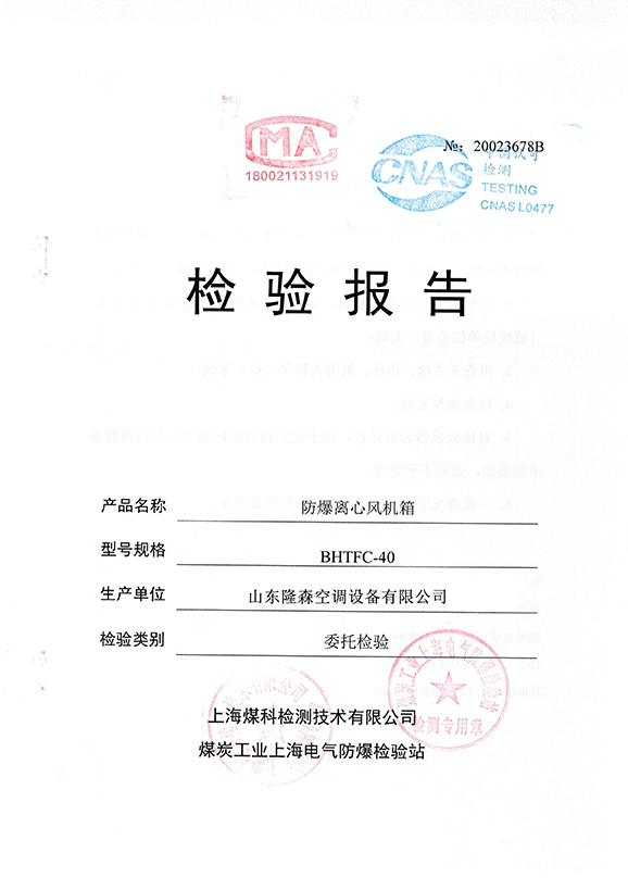 • 防爆排煙風機合格證